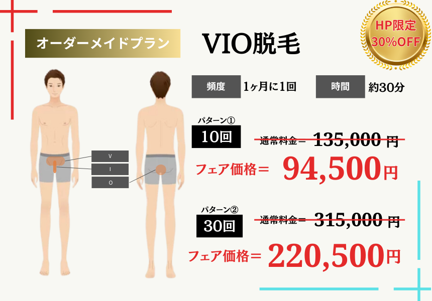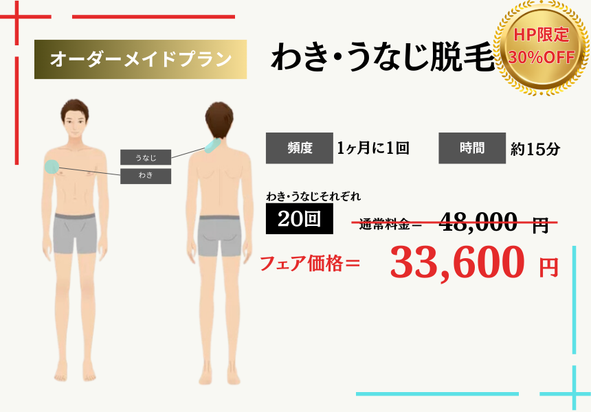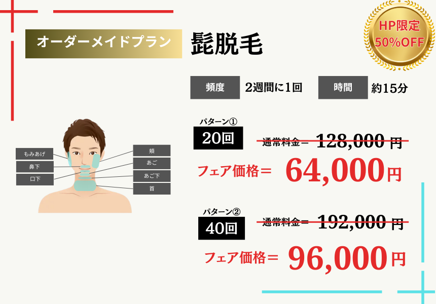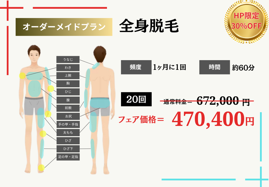 何れの部位においても、当店のメニュー一覧で朱書きしている推奨施術回数の1回あたりの料金となります。